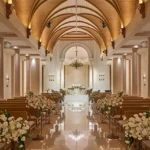 플라워 커스텀 팀과 회의를 시작하는 순간 그 결심은 처참히 무너집니다. 하얏트 그랜드볼룸 워낙 천고가 높고 광활해서 꽃장식을 기본금인 1,500~2,000 수준 언저리로 타협하면, 텅 비어 있는 휑한 홀을 마주하게 됩니다. 돈 아꼈다는 티가 너무 적나라하게 드러납니다. 따라서 ‘행잉(공중 장식)’을 치우고, 테이블 센터피스와 버진로드 입구에만 ‘몰아주기식’ 덩어리 볼륨을 극대화하여 시선을 한 곳으로 착시시키는 플로리스트와의 처절한 비용 네고 능력이 필수입니다.